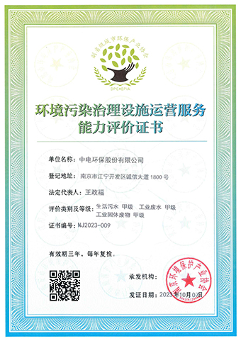 環(huán)境污染治理設(shè)施運(yùn)營(yíng)服務(wù)能力甲級(jí)